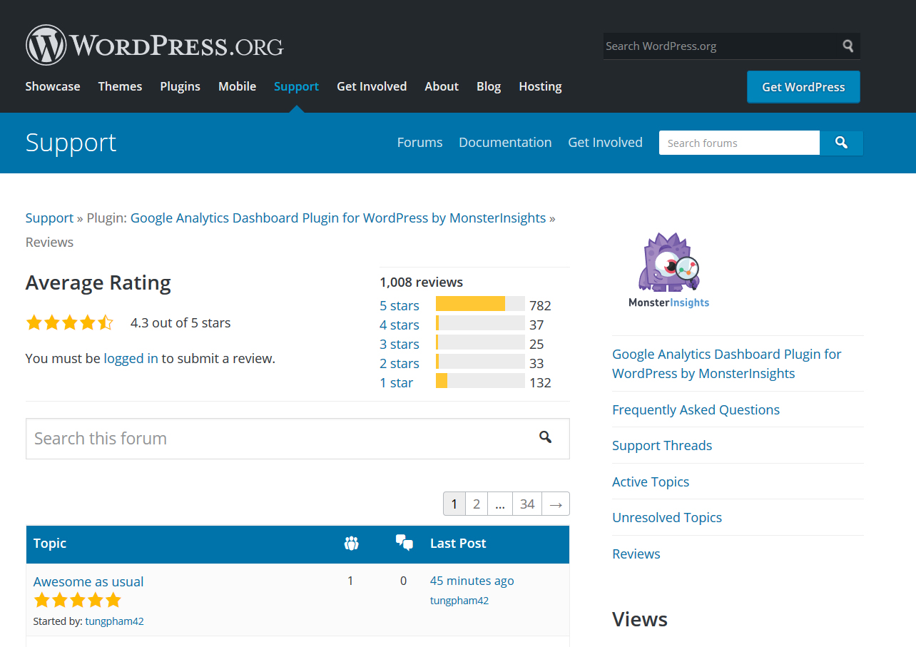 We have also mentioned that MonsterInsights is a very popular Google Analytics plugin for WordPress. It has over 2 million active installs and has a rating of 4.3 stars. Offered as either a free or premium plugin, this plugin has features based upon your needs and budget.